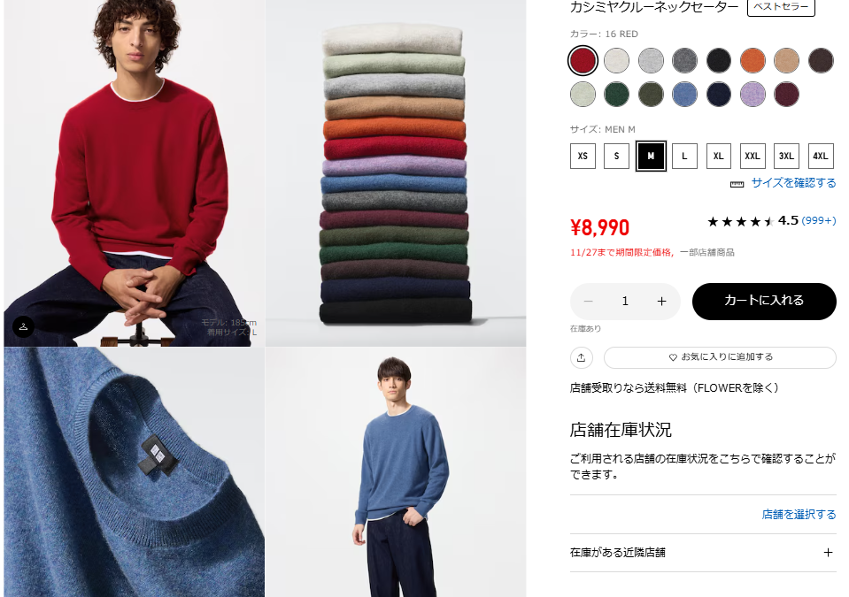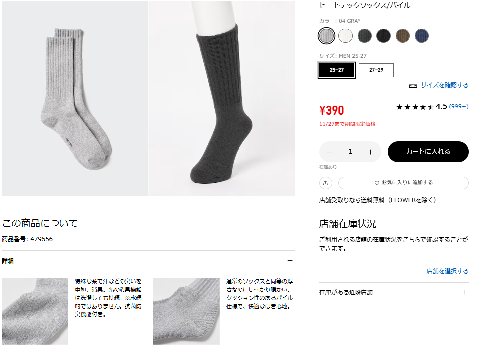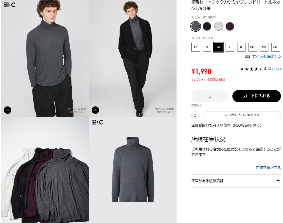 シンプルなヒートテックも良いし、Uniqlo Cのカシミヤ混のタートルも良いですな。靴下もあります。
