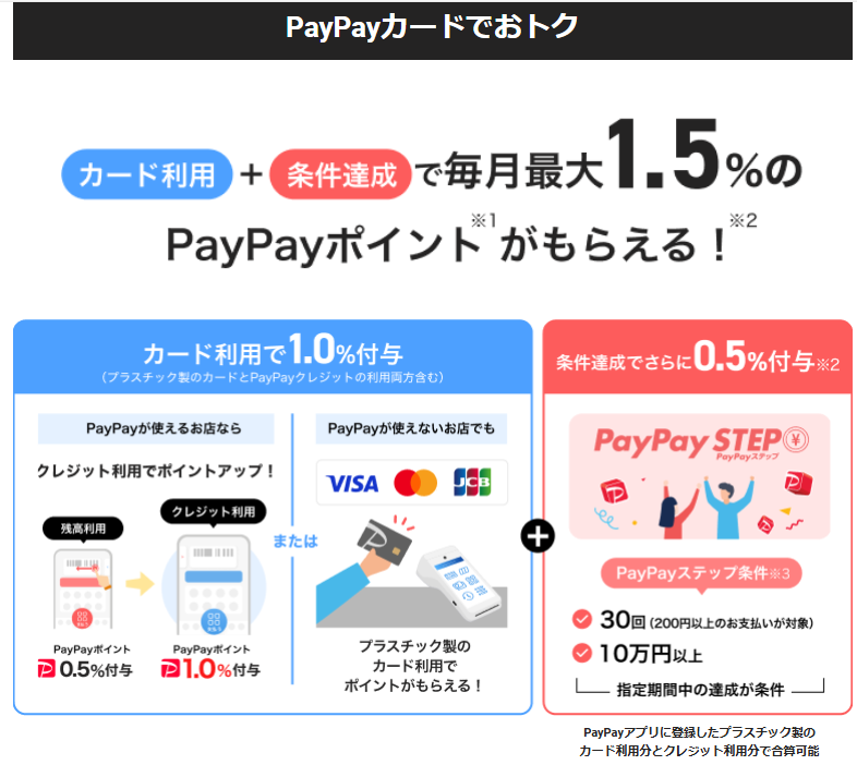 PayPay残高を使うよりも高い率のPayPayポイントがもらえます。