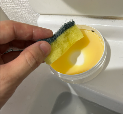 私はスポンジの固い方にサドルソープをつけてゴシゴシしました。