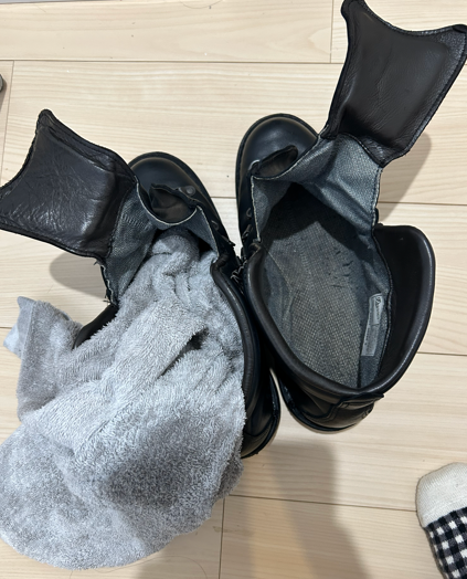 靴の内側もしっかり拭くと、乾くのが早いです。