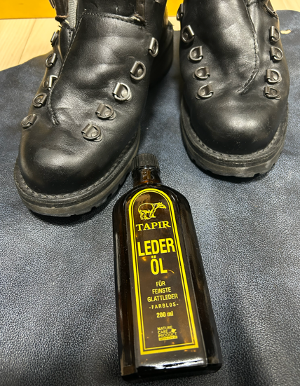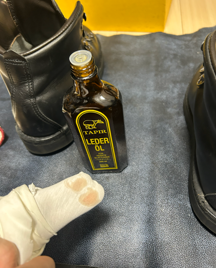 ブーツにはオイル感が欲しいので、TAPIRのLEDEROILを塗っていきます。