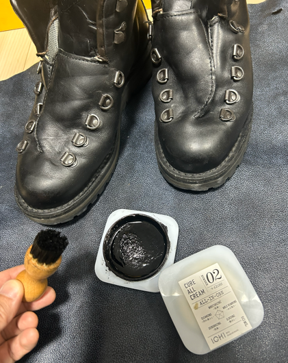 今回はつま先にダメージがあったので、ダニさんのDeep Blackでしっかり色を補色します。