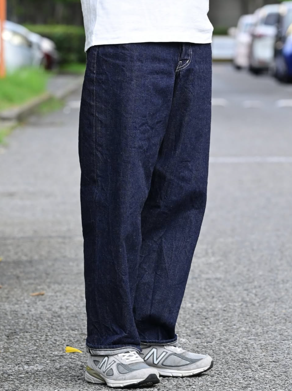 言われてみれば、990に合わせるとしたら、リーバイスはなんかしっくりこないし、コモリやオーラリーのジーンズは合うけど、ゆったり感が強すぎて職場に履いて行きにくい。