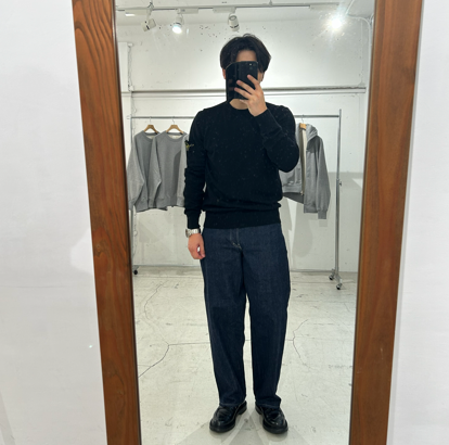 ジーンズの型がフレンチライクになっていて、Bernard Zinsのスラックスのようなシルエットになっております。