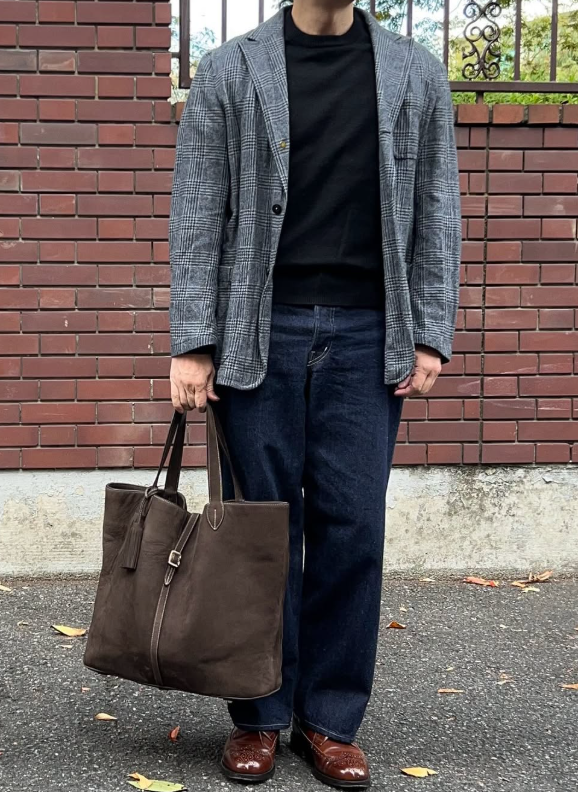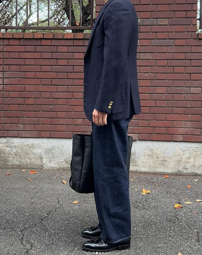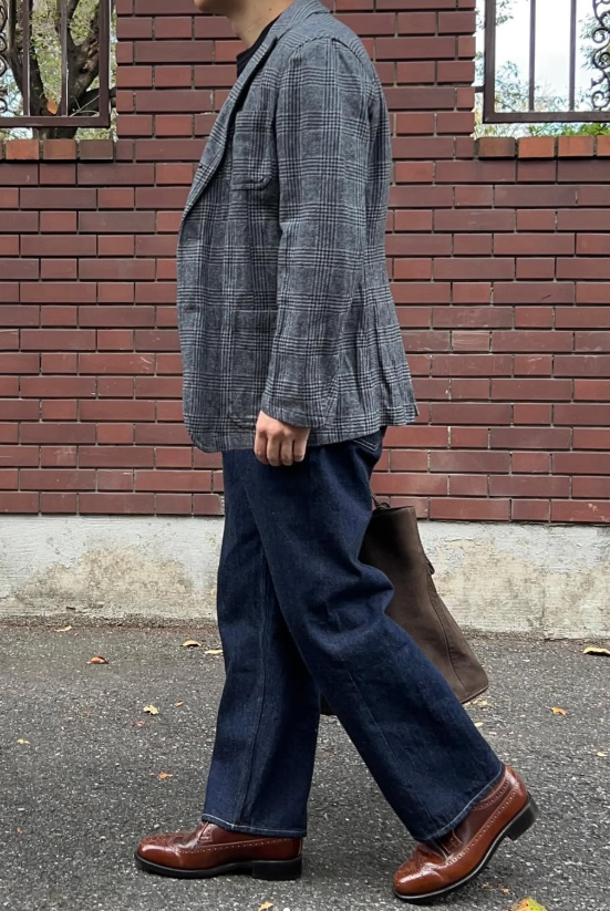 カジュアル寄りのジャケットとの相性が良く、適当にトップスを選んでも、しっかり大人カジュアルにしてくれる優秀ジーンズです。