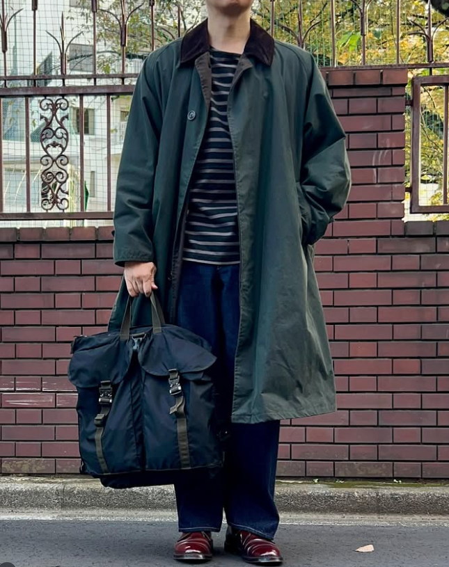 程よいボリュームのあるジーンズなので、ロング丈のBarbourに合います。